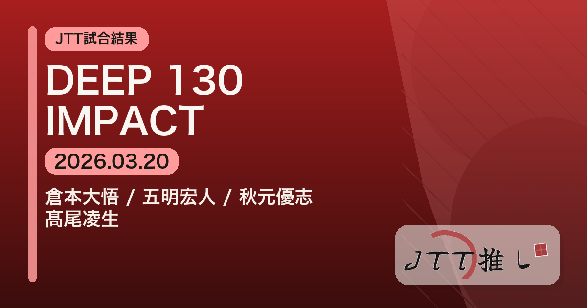 DEEP 130 IMPACTに出場したJTT勢4試合の結果まとめ。高尾凌生、秋元優志、五明宏人、倉本大悟の試合内容、勝敗、試合の背景、所感まで振り返る。