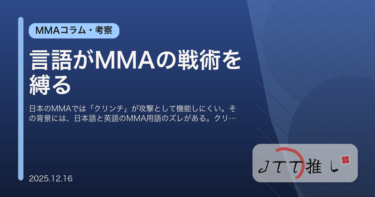 日本のMMAでは「クリンチ」が攻撃として機能しにくい。その背景には、日本語と英語のMMA用語のズレがある。クリンチ、壁レス、差し合いなどの言語差から、日本MMAの戦術的課題を考察する。