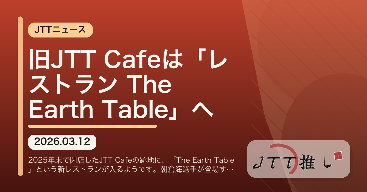 2025年末で閉店したJTT Cafeの跡地に、「The Earth Table」という新レストランが入るようです。朝倉海選手が登場するリールや店のコンセプト、価格帯の変化から、JTT Cafe跡地の今後を考察します。