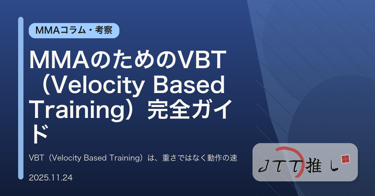 VBT(Velocity Based Training)は、重さではなく動作の速さを基準に負荷を管理する最新トレーニング手法。MMA選手向けにスピード・爆発力・筋肥大をどう鍛えるか、機材・メニュー・年間の使い分けまで分かりやすく解説します。