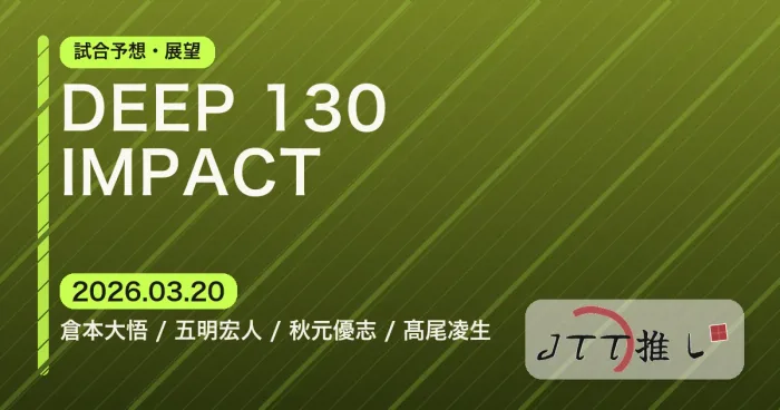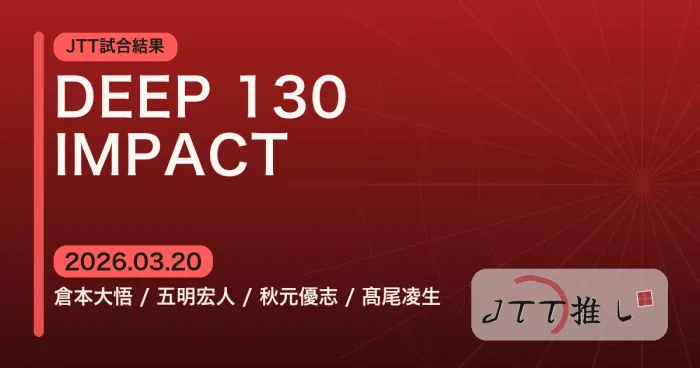 DEEP 130 IMPACTに出場したJTT勢4試合の結果まとめ。高尾凌生、秋元優志、五明宏人、倉本大悟の試合内容、勝敗、試合の背景、所感まで振り返る。